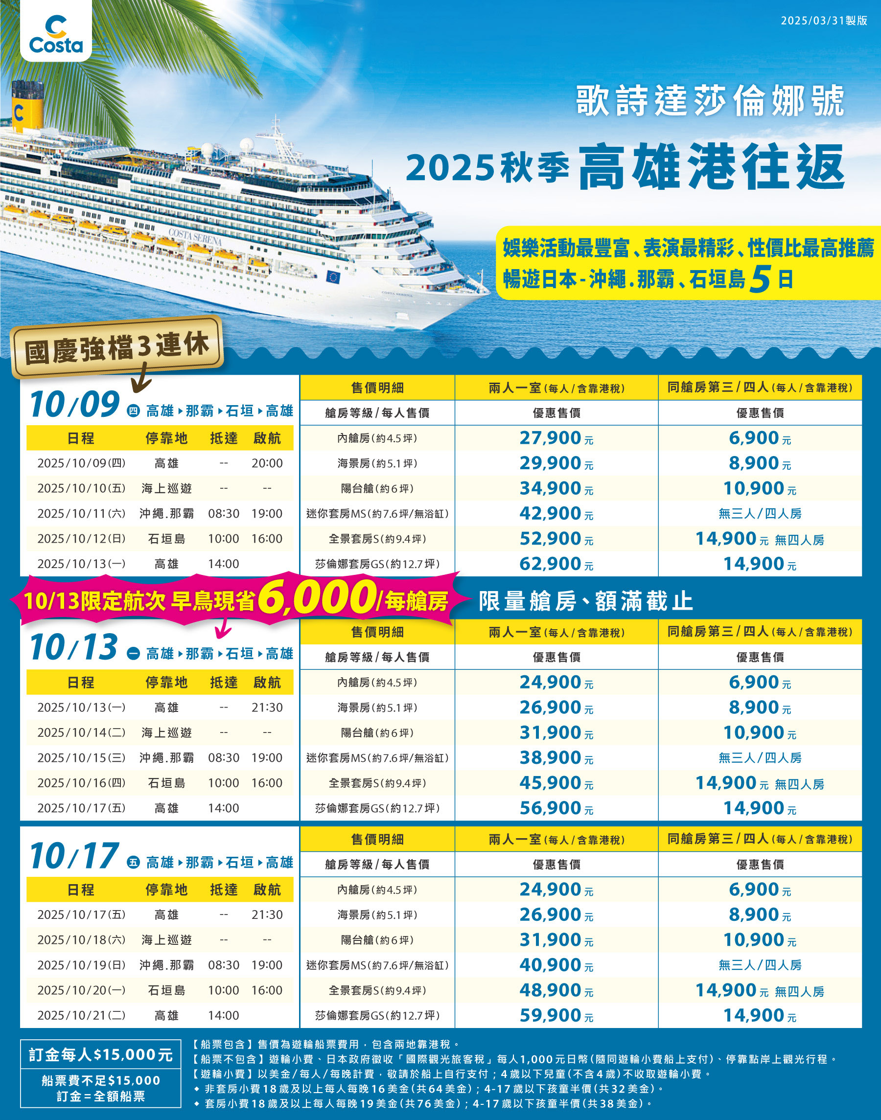 MSC地中海榮耀號 Bellissima 🌊 高雄直航沖繩&石垣島,六日海上自由行! 17.2萬噸、19層甲板…