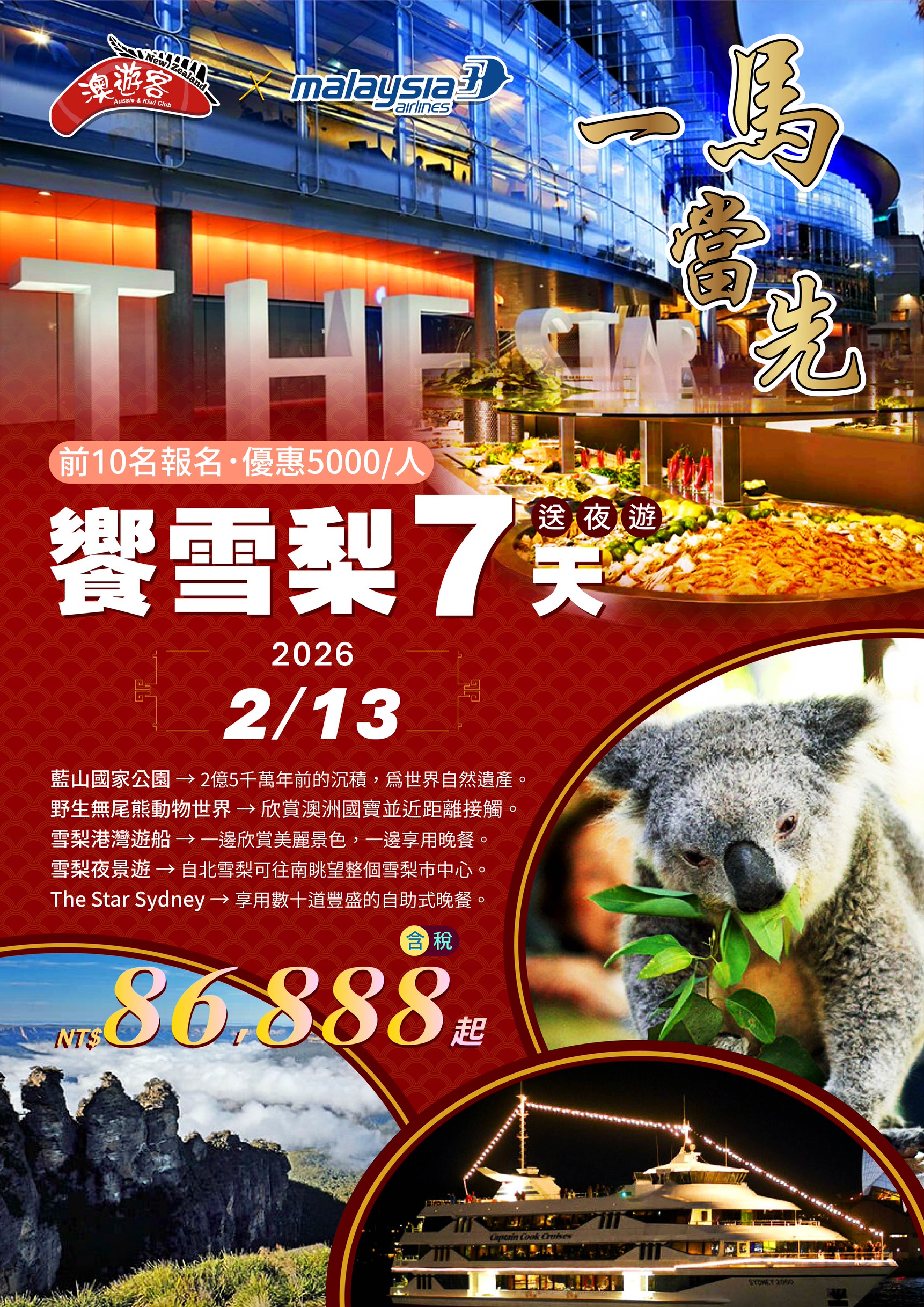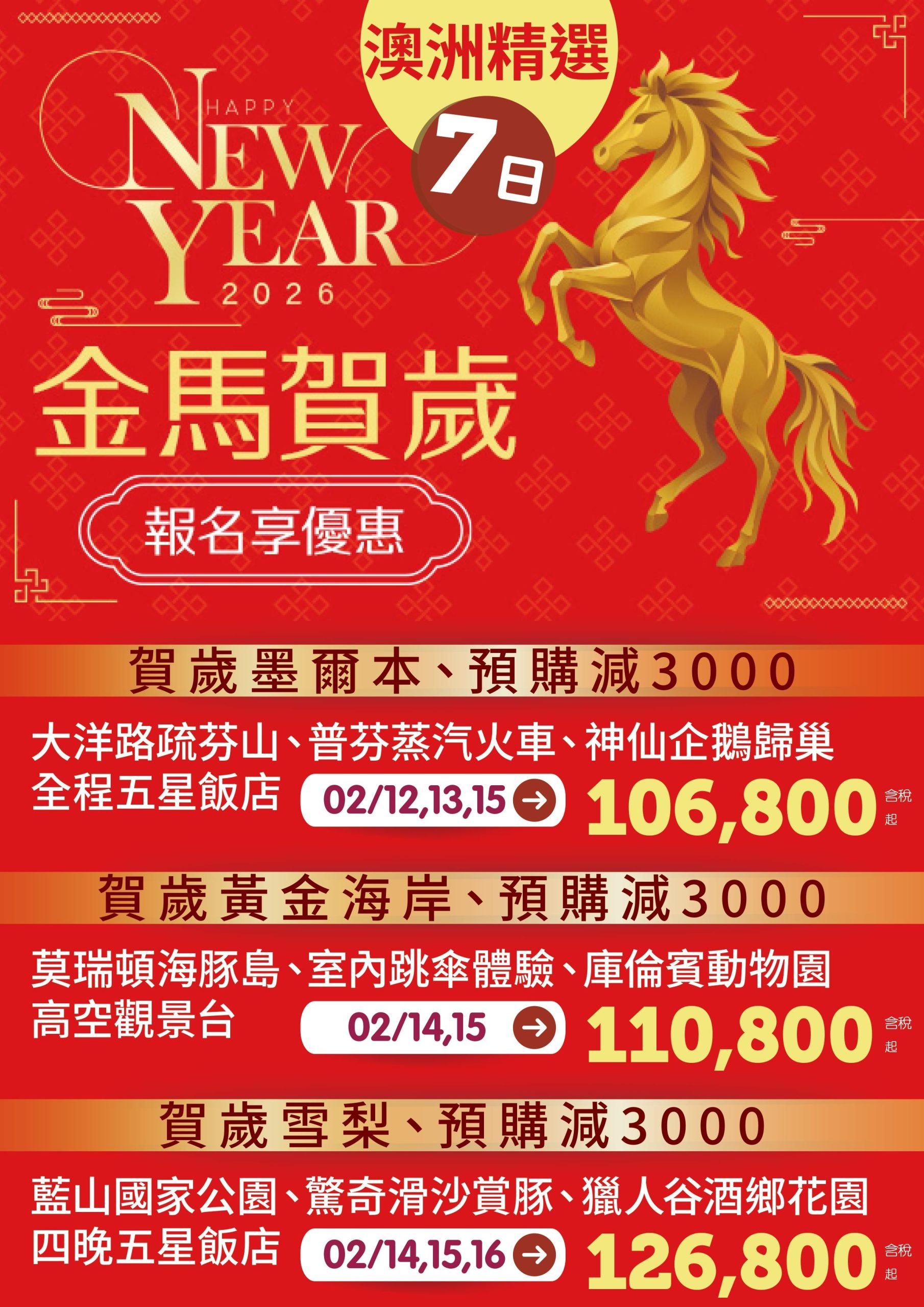 🔥【賀歲墨爾本、預購減3000】大洋路疏芬山、普芬蒸汽火車、神仙企鵝歸巢、全程五星飯店七日🔥 ✅大洋路世界奇景…