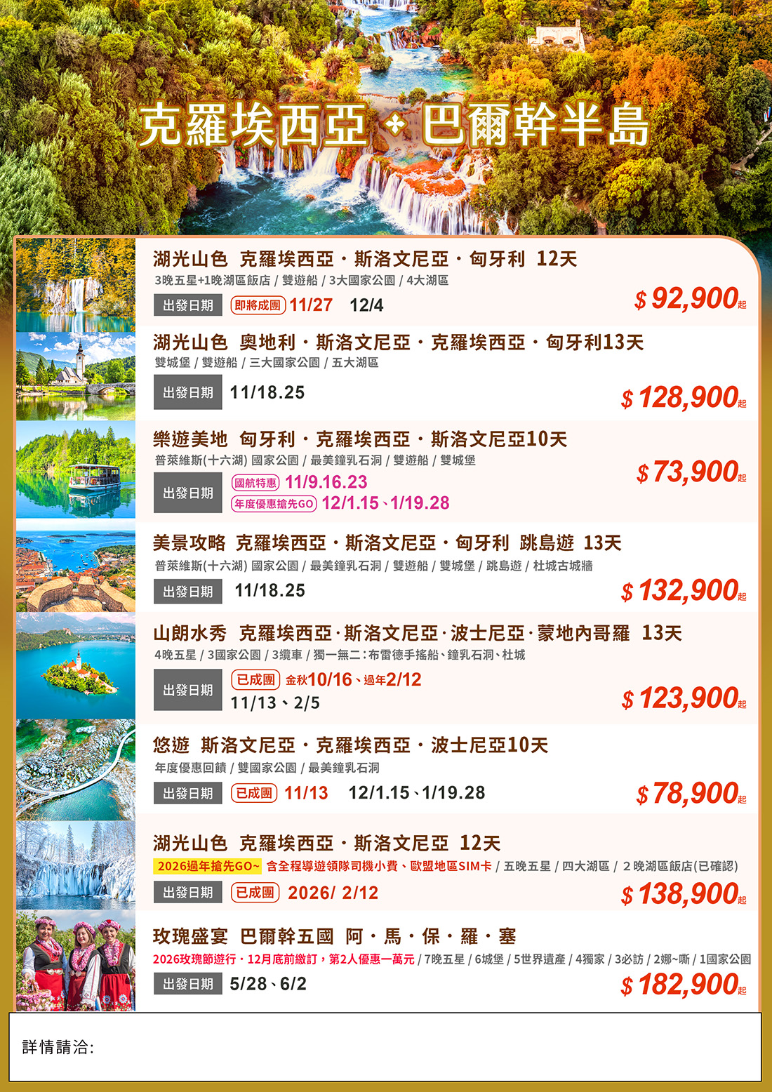 💭 如果能去一次東歐旅行,您最期待哪個景點?✨ 🏞️在「十六湖國家公園」數層層碧湖與白色瀑布 🛶 搭上雙船遊湖…