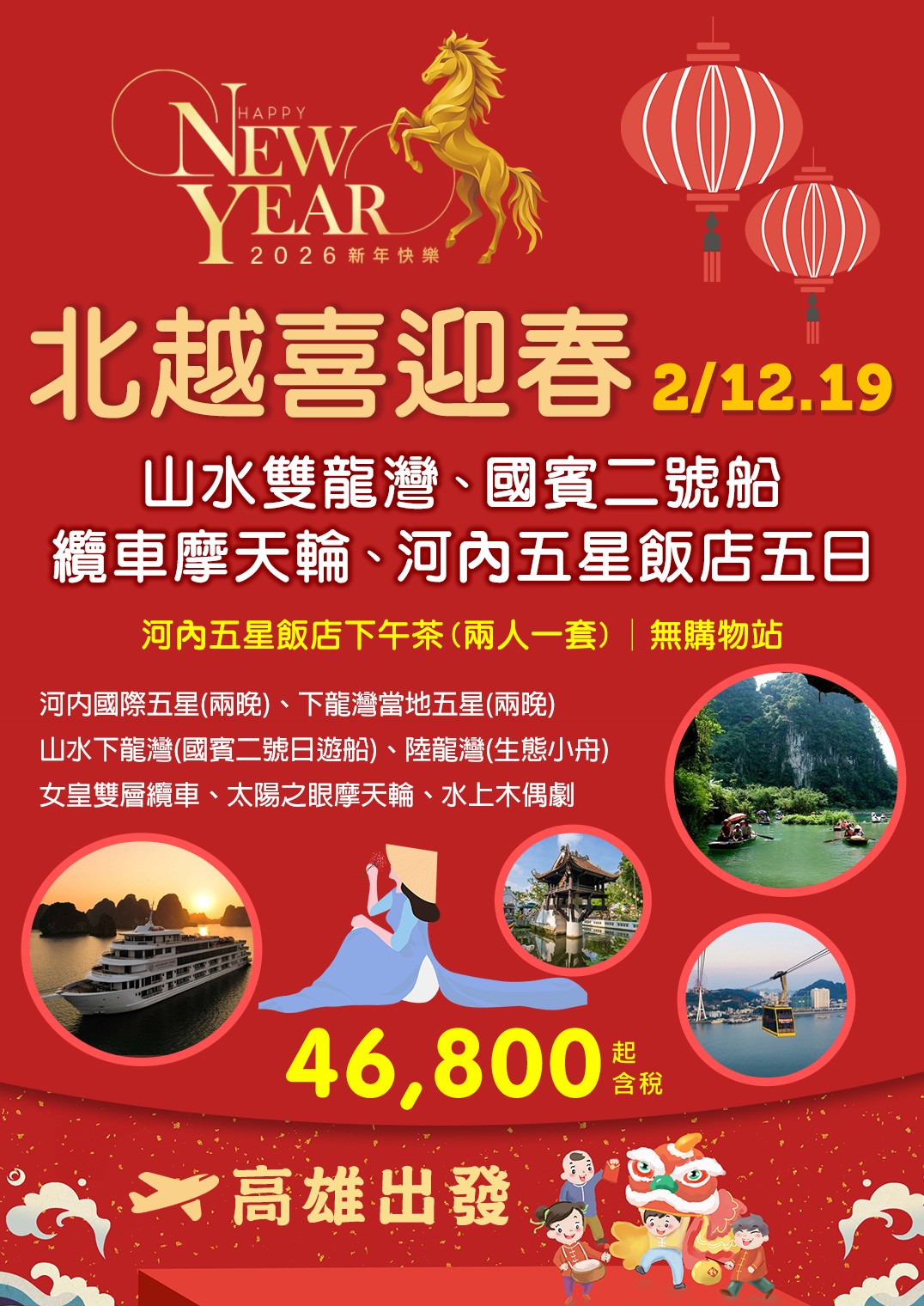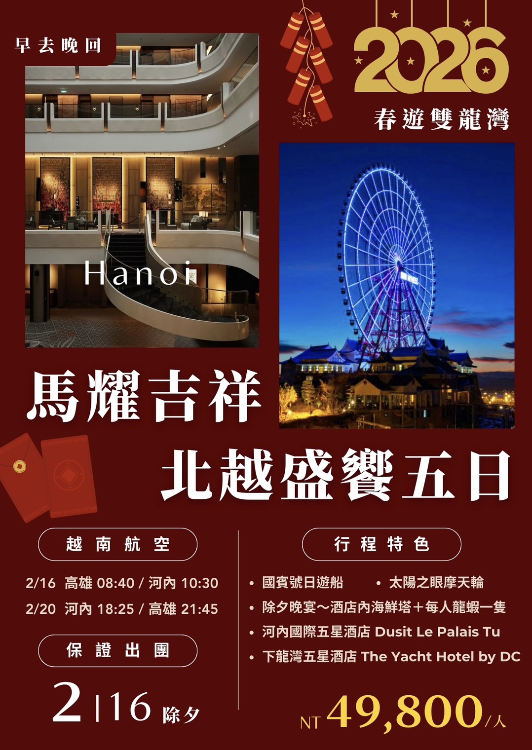 2026🇻🇳馬耀吉祥🐎 北越盛饗~春遊雙龍灣五日 🌟🌟🌟🌟🌟 河內國際五星酒店Dusit Le Palais …