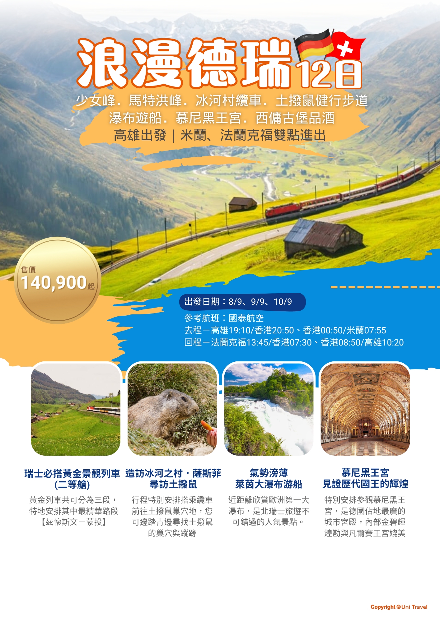 🐹高雄出發 萌感爆表土撥鼠 浪漫德瑞送米蘭12日 ~ 已成團🐹 🛫國泰 19:10高雄/20:50香港、00:…